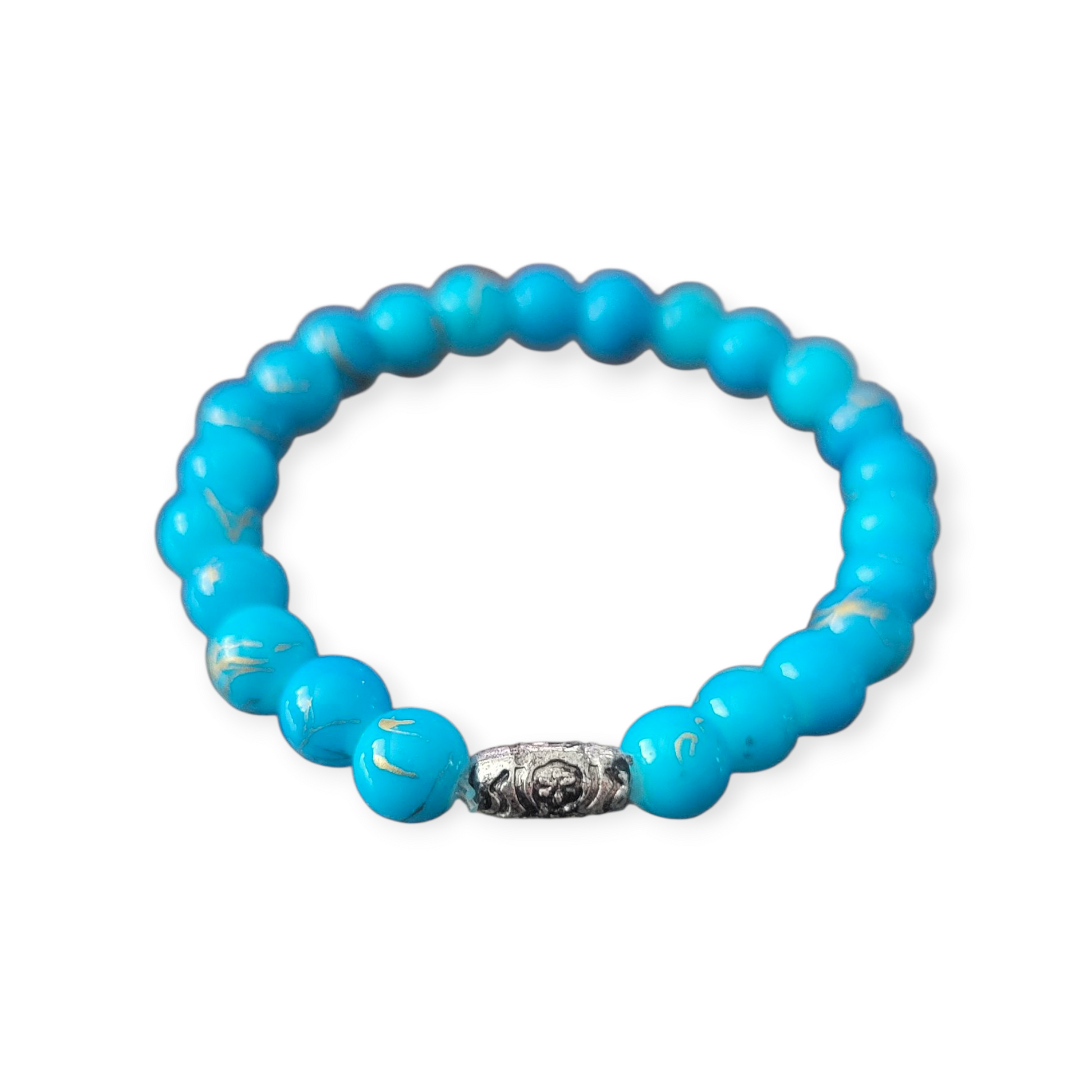 Blue beaded bracelet with a silver charm